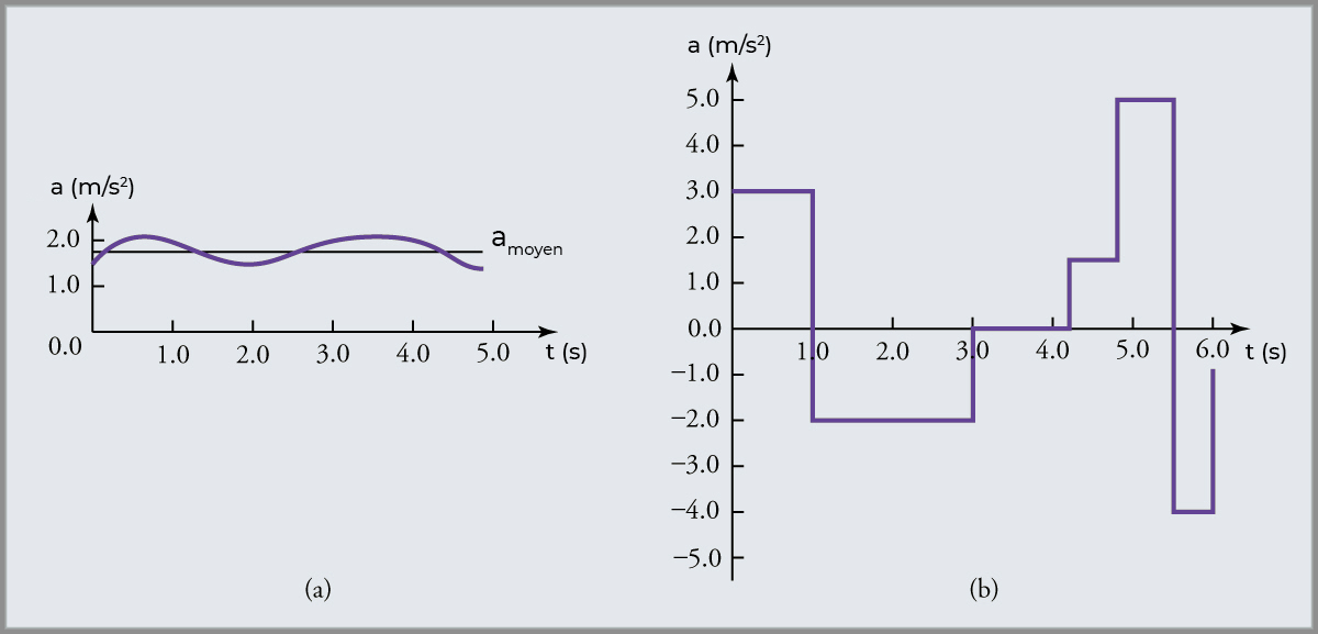La Fig. 4.3 montre des graphiques d’accélération instantanée en fonction du temps pour deux mouvements très différents :