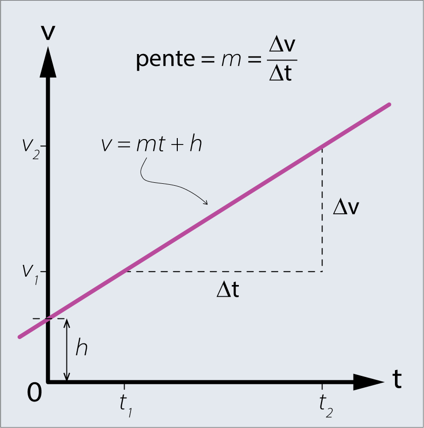 Fig. 5.6 La figure montre un graphique en ligne droite. L’équation de la ligne droite est \(v(t) = m\cdot t + h\), ou \(m\) est la pente de la droite et \(h\) sa position au temps \(t_{0}=0\).#