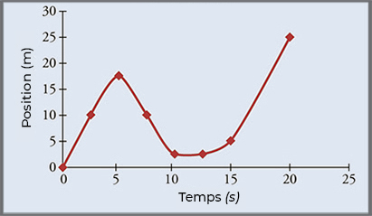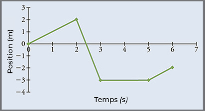 La figure ci-dessous montre le graphe de position d’une particule pendant \(6\,s\) :