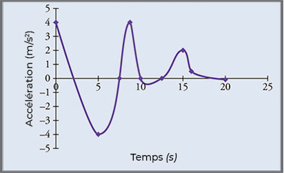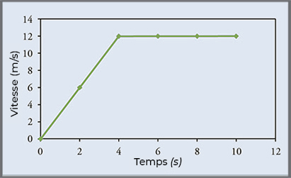 Quelle est l’accélération entre \(0\,s\) et \(2\,s\) ?