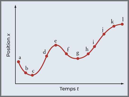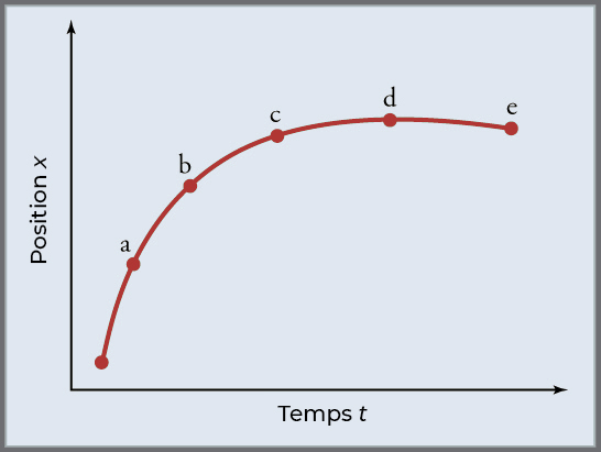 Expliquez comment vous pouvez utiliser le graphique de la position en fonction du temps de la figure ci-dessous pour décrire le changement de vitesse au fil du temps. Puis identifiez :
