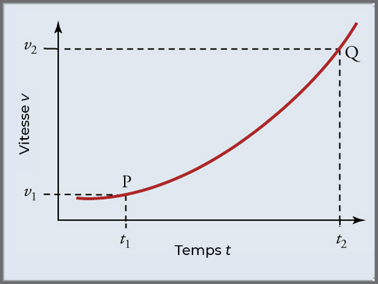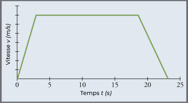Expliquez comment vous pouvez déterminer l’accélération au fil du temps à partir d’un graphique de vitesse en fonction du temps tel que celui de la figure ci-dessous.