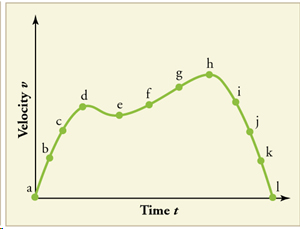 Identifiez le(s) moment(s) (\(t_{a}\), \(t_{b}\), \(t_{c}\), etc\(\ldots\)) quand la vitesse instantanée est la plus élevée.