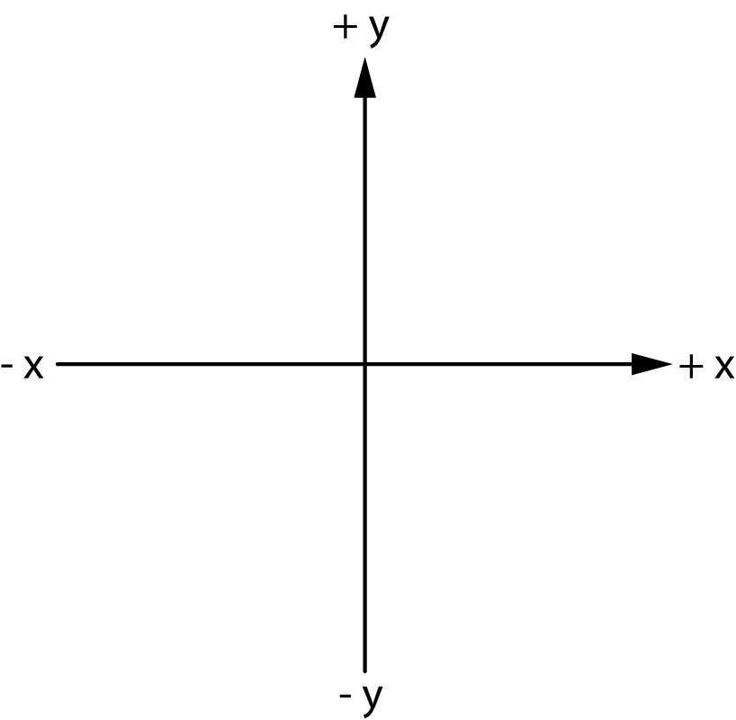 Fig. 2.4 On considére souvent les directions vers le haut ou vers la droite comme positives (\(+\)) et les directions vers le bas ou vers la gauche comme négatives (\(-\)).#